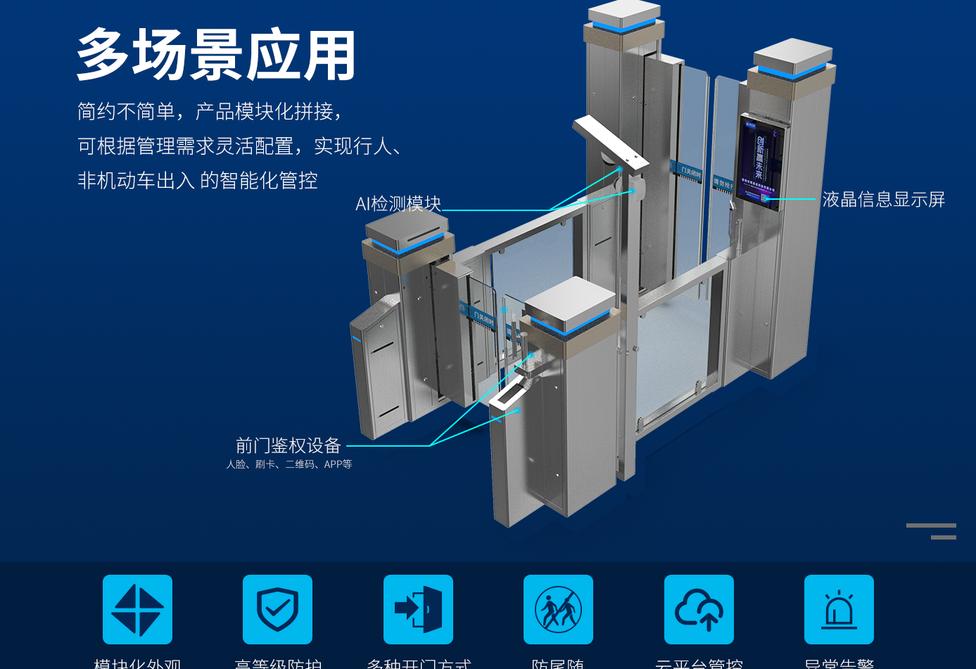 祥瑞1號(hào)BSG-MIGS1-S01R智慧門崗機(jī)器人是一種新一代社區(qū)出入口智能管理終端,該系統(tǒng)對(duì)社區(qū)出入口進(jìn)出的人流進(jìn)行智能化判斷、管理,業(yè)主出入社區(qū)時(shí)可實(shí)現(xiàn)輕便通行(支持人臉識(shí)別、二維碼識(shí)別等八種開門方式)。當(dāng)遇到尾隨、跨越等情況時(shí),系統(tǒng)會(huì)根據(jù)對(duì)通道內(nèi)人數(shù)的感應(yīng),判斷是否正常開門。遇到惡意闖入在通道滯留的情況,系統(tǒng)自動(dòng)抓取闖入者人臉信息并上傳至管理后臺(tái),同時(shí)聯(lián)動(dòng)管理中心迅速做出反應(yīng),保障社區(qū)安全。