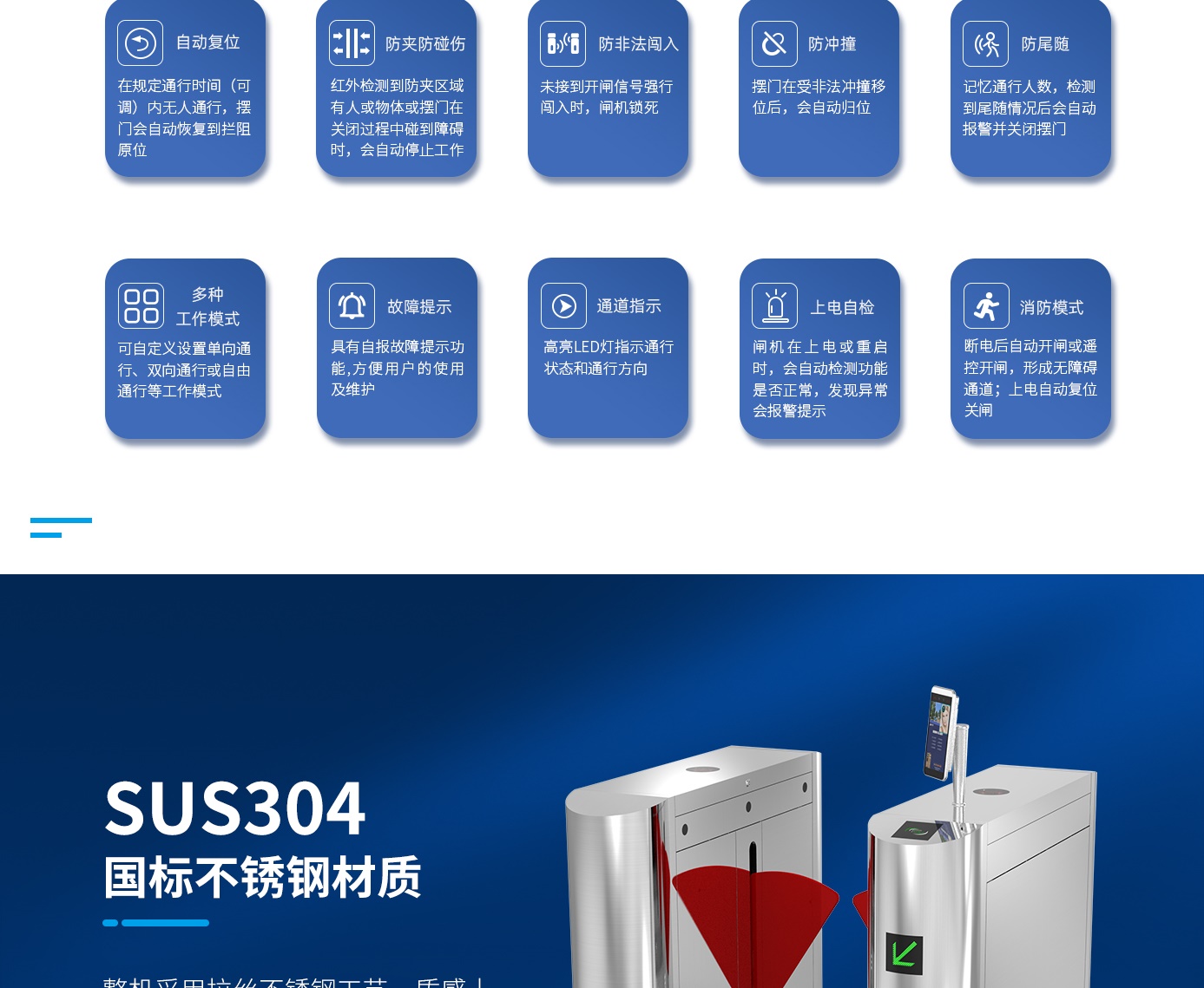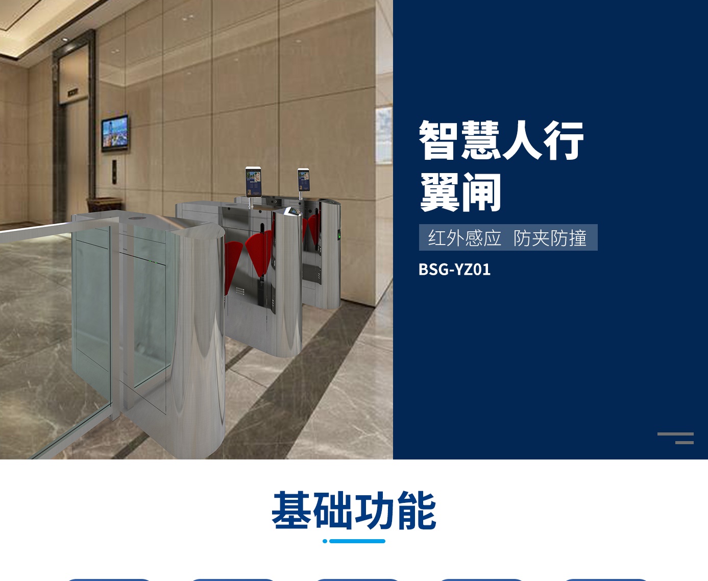 博思高人行翼閘YZ01是一款熱銷的人行通道閘機設(shè)備。它的外形呈翼形,類似于鳥翼展開的形狀。人行翼閘通常由兩個或多個閘翼組成,可以自動打開和關(guān)閉,控制人員的進(jìn)出。人行翼閘通過刷卡、感應(yīng)等方式識別人員身份,只有經(jīng)過授權(quán)的人員才能通過。在通行過程中,閘翼會打開并迅速關(guān)閉以阻止無授權(quán)人員進(jìn)入。人行翼閘廣泛應(yīng)用于公共交通站點、商業(yè)建筑、政府機關(guān)、企事業(yè)單位等場所,起到了方便、安全管理人員通行的作用。
